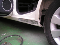運転席の死角に在る短いポールに接触しサイドスポイラーとステップパネルの損傷 -