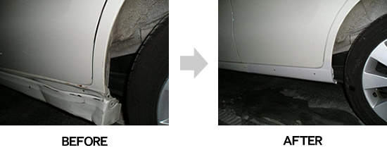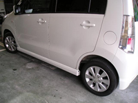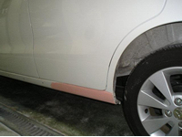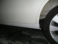 運転席の死角に在る短いポールに接触しサイドスポイラーとステップパネルの損傷 -